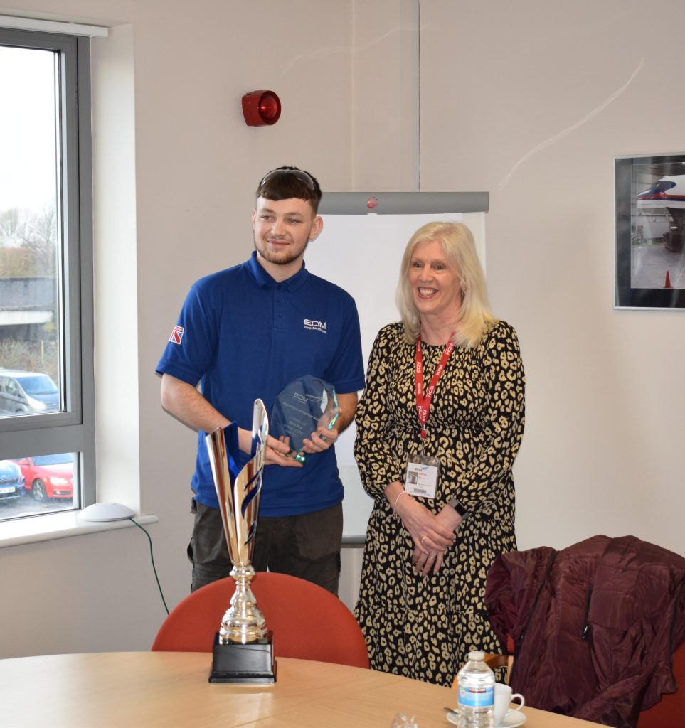 The award was created in memory of Kevin Bird (EDM Director 1996 – 2012) to highlight the importance and significance of the apprenticeship scheme, with the trophy and cheque, being presented by Fiona Bird.