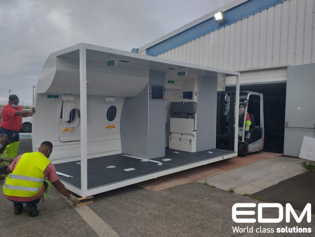 Manchester, UK. EDM, the leading global provider of training simulators to the civil aviation and defence sectors, announced the completion of the delivery of an Airbus A220 Extended Door trainer to Air Austral and their training facility on Reunion island, Sainte-Marie.