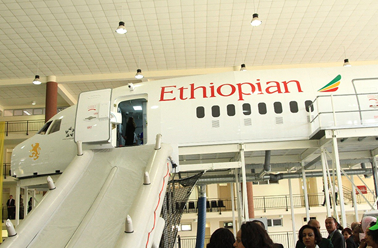 The main CEET structure will be a generic wide body fuselage, built to a modular construction to facilitate its transportation and installation. The trainer will include 6 training doors in total with the front left and right doors fully functional B787s and the rest fully functional B777s. The CEET will also be fitted with SEPTRE, EDM’s industry-leading audio-visual system that enables even higher levels of cabin crew training through the provision of pre-programmed emergency scenarios such as aborted take-off, engine fire, gear collapse, ditching and decompression.